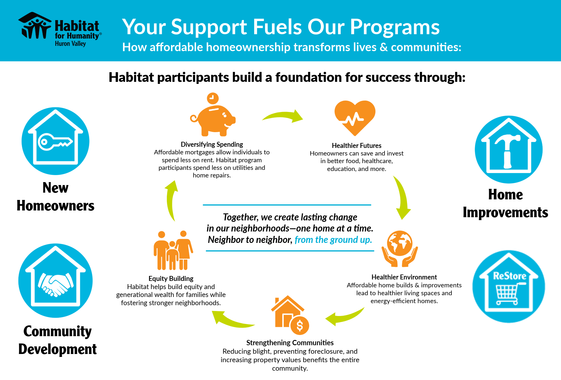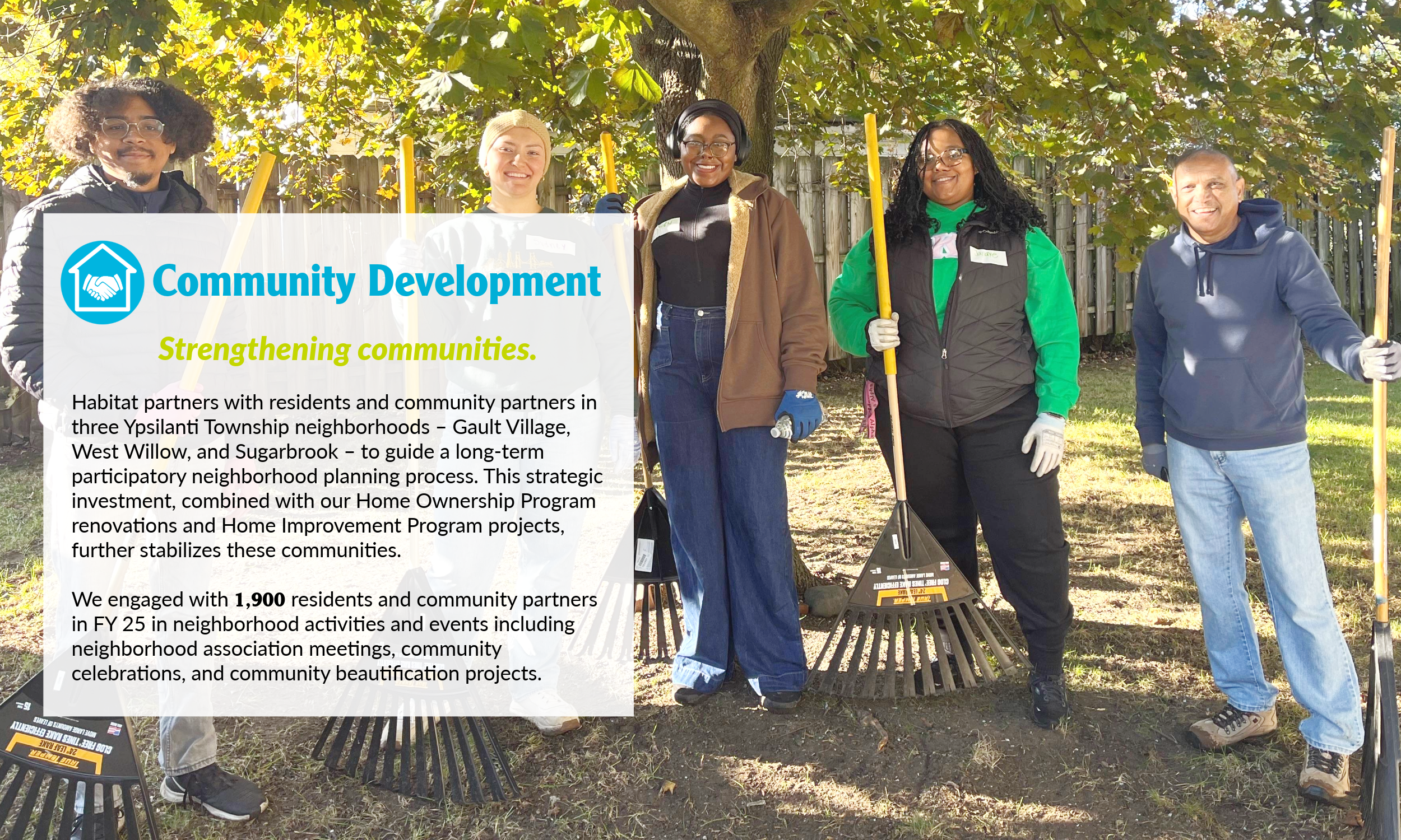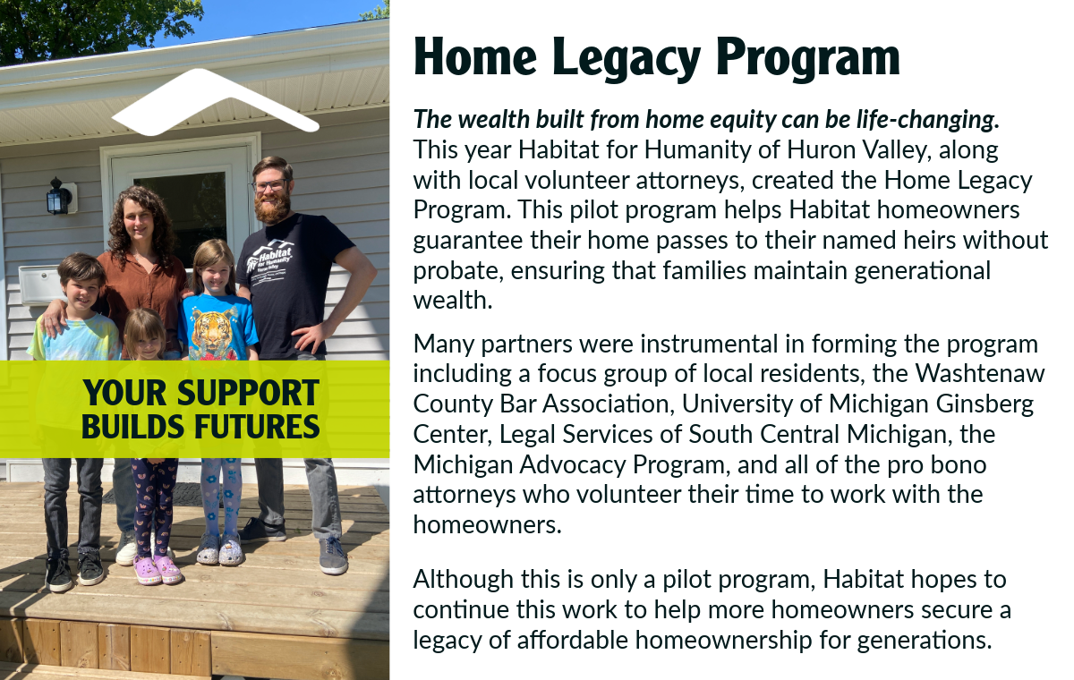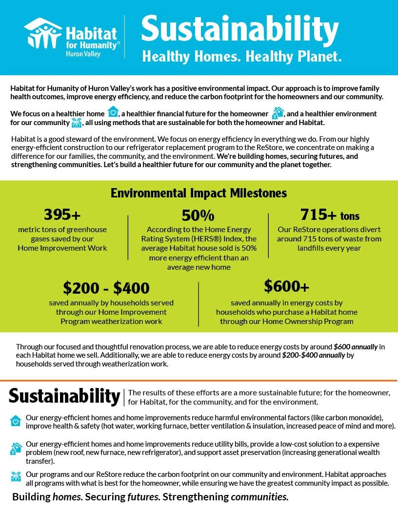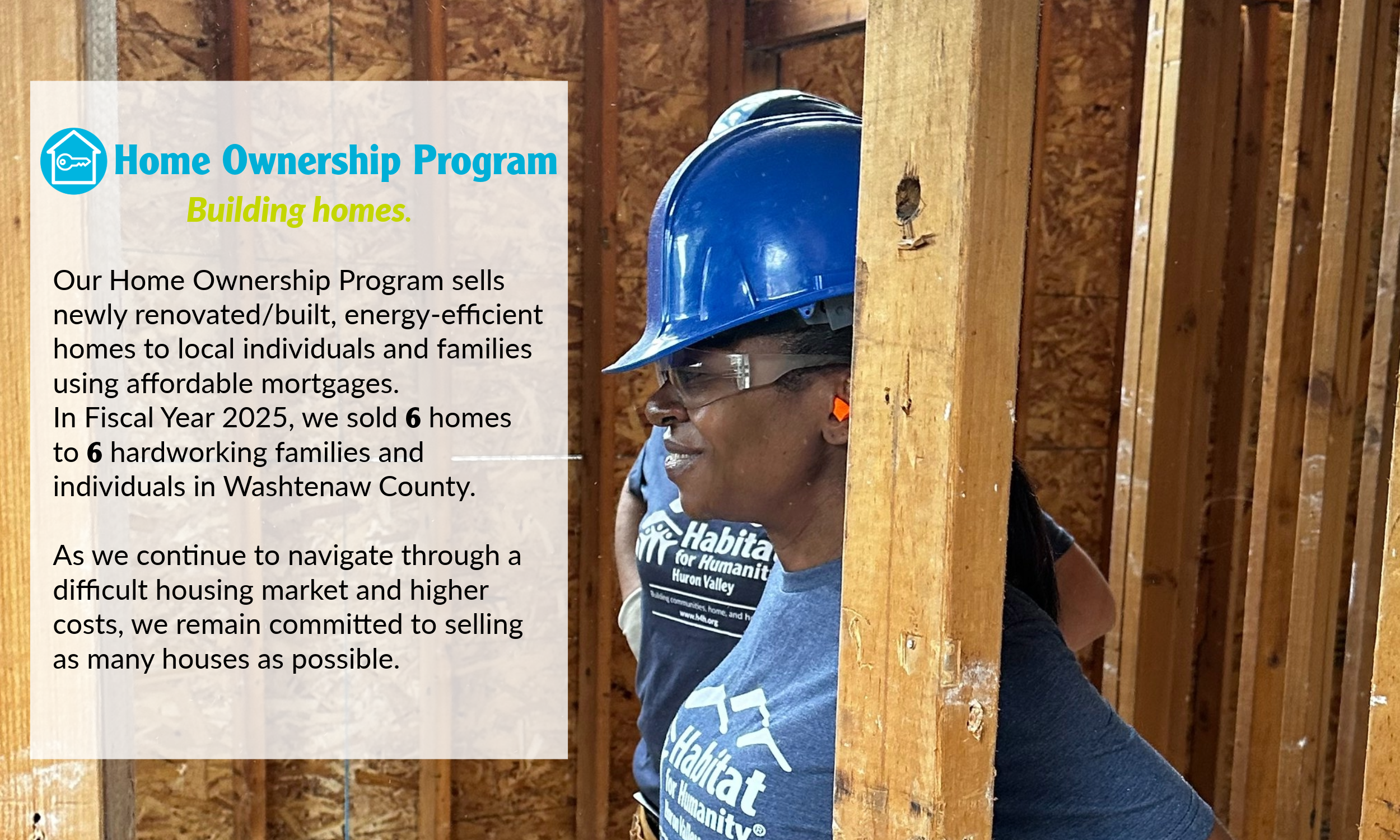 In this difficult housing market, we concentrate our resources where they will have the greatest impact. The buying power of Habitat homeowners has barely increased while the cost of the homes has drastically increased. Habitat’s work goes beyond building homes; we are securing futures through our Home Improvement Program and Community Development efforts. We work to keep people in their homes and be able to pass those homes on.